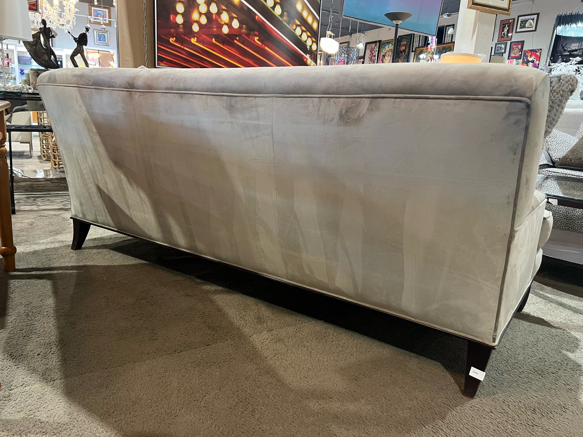 Bassett Gray Custom Upholstered Suede Sofa w/ Pillows