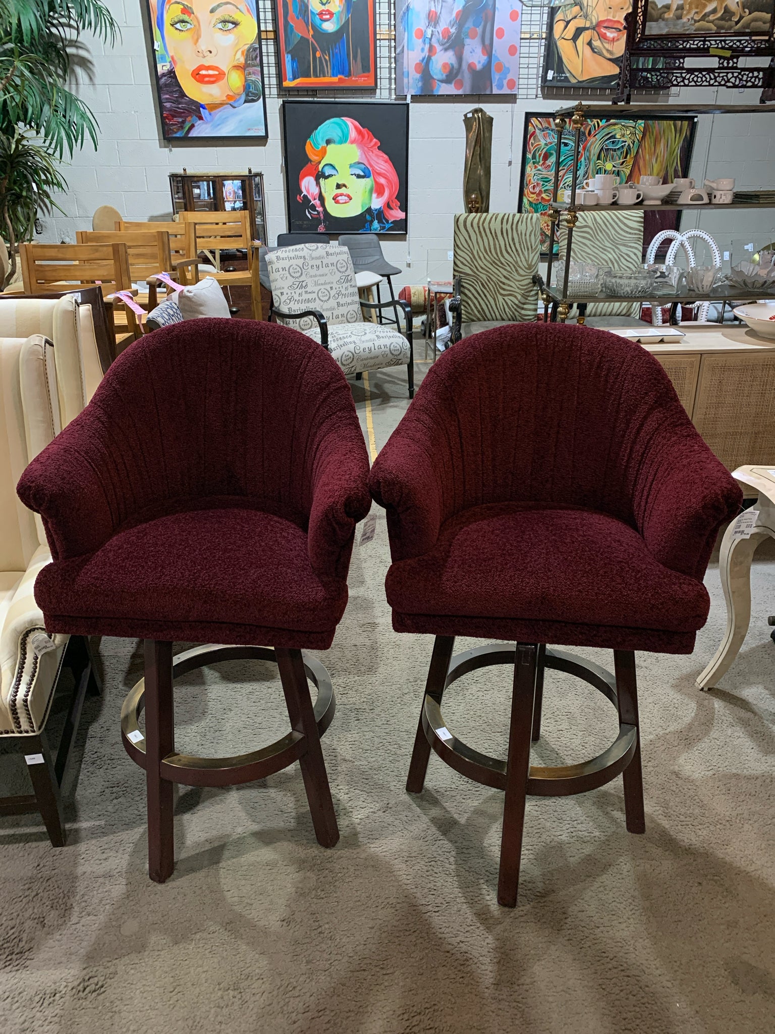 Burgundy Boucle Bar Stool