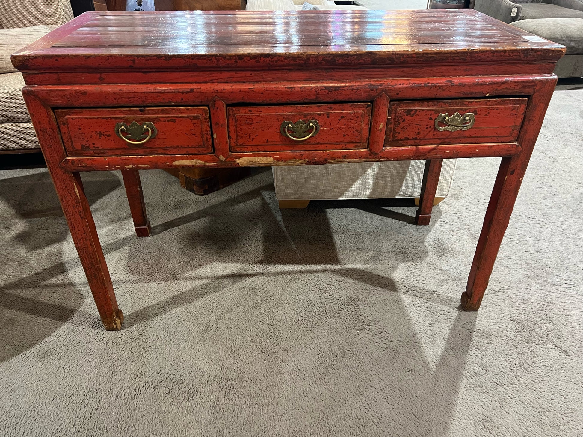 Rustic Red 3 Drawer Wood Console Table